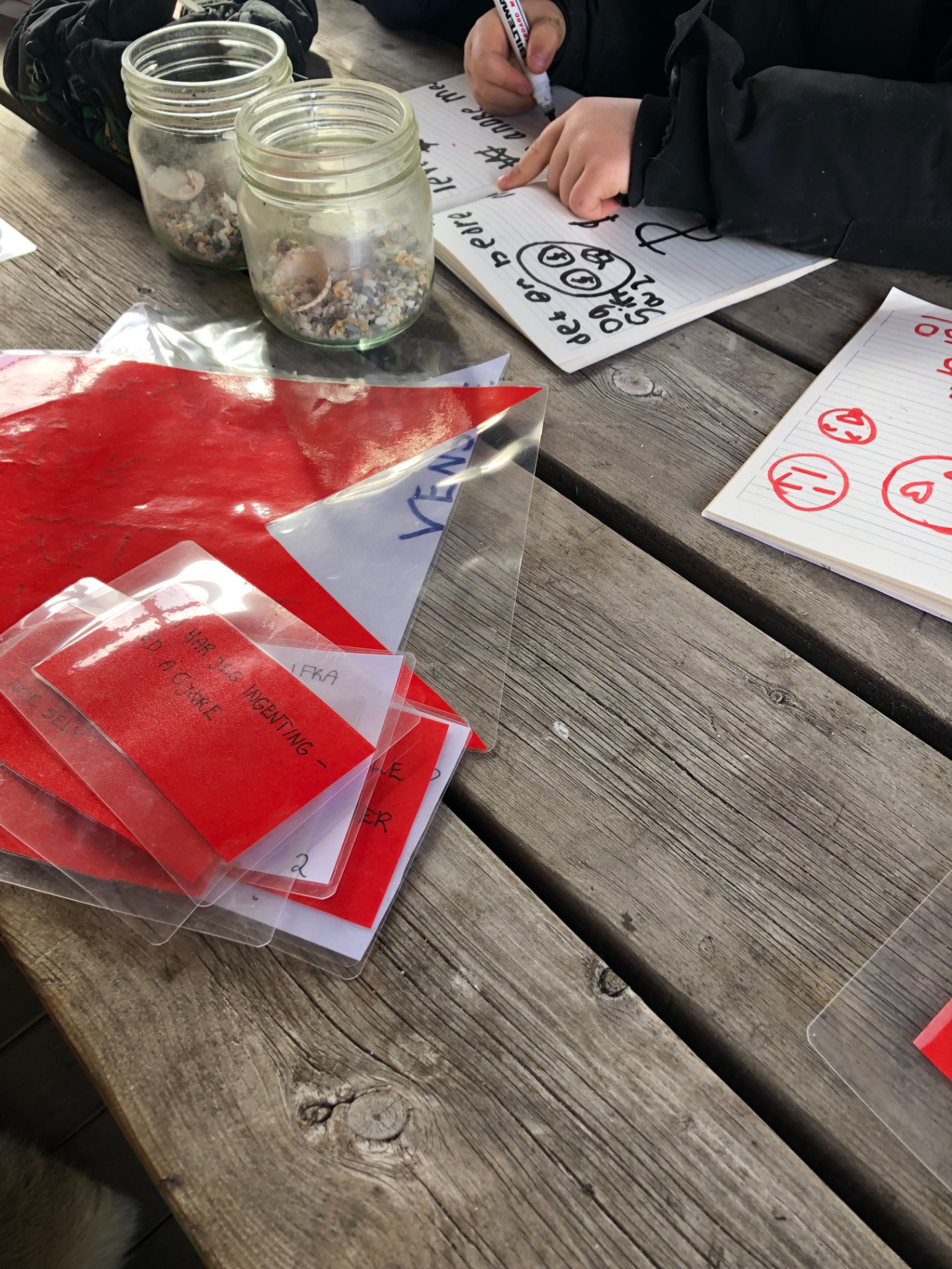 De to andre elevene står på hver sin vei, og holder opp ulike "livsretninger og etiske påstander". Sammen skal vi til slutt når alle elevene har vært gjennom løypa, reflektere og filosofere over elevenes "vei valg". Elevene skriver så ned samtalene i deres skrivebok.